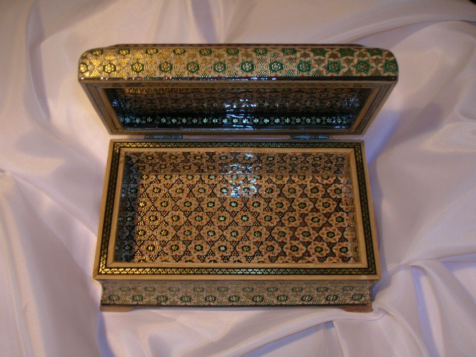 la raffinatezza dell’esecuzione in mosaico prevede un’altissima cura degli oggetti, veri e propri capolavori di artigianto artistico, che prevede addirittura il rivestimento in mosaico della base lignea anche internamente